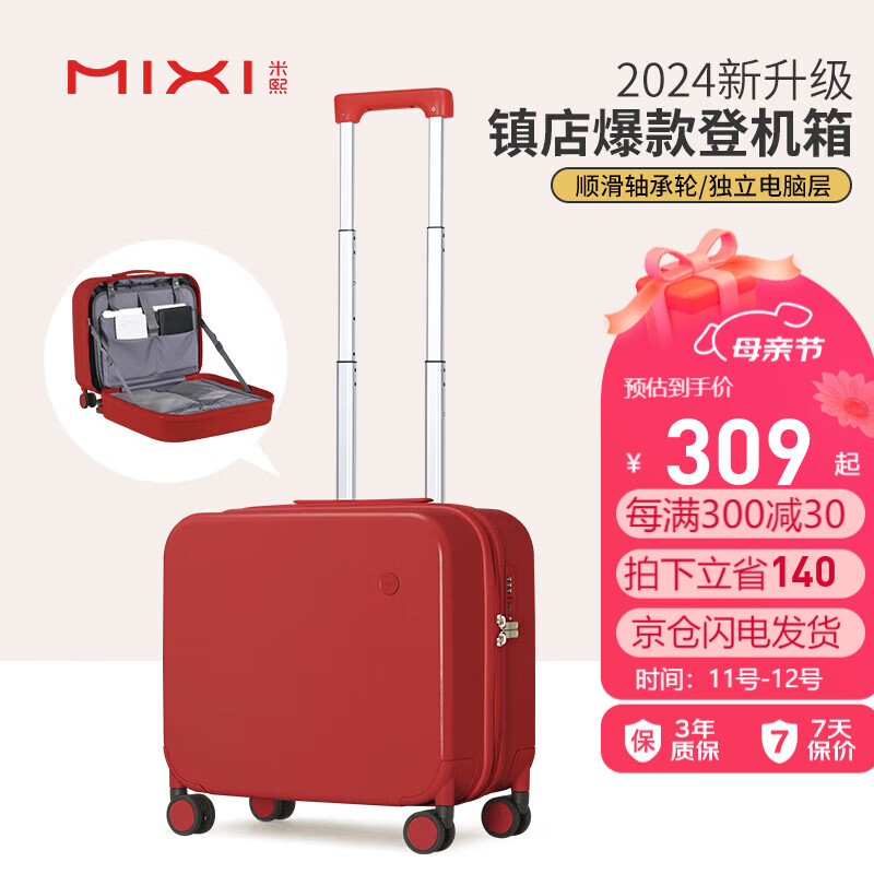 米熙高颜值登机箱小行李箱女拉杆箱小旅行箱女行李箱男18英寸复古红36价格:449.00元!