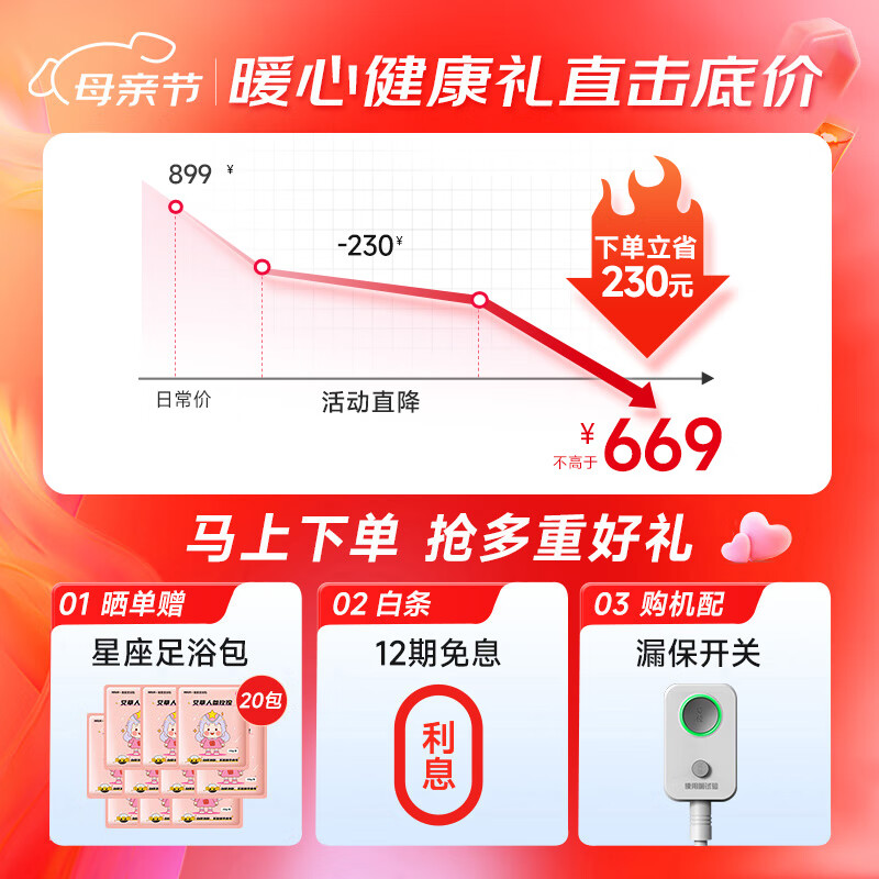 HITH泡脚桶 智能全包裹气囊按摩足浴盆 全自动加热恒温杀菌高深桶足浴泡脚盆 母亲节礼物送妈妈 YMZ-W6价格:899.00元!