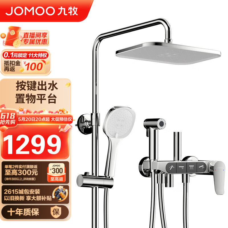 九牧(JOMOO)花洒套装 按键四分水大流量顶喷除垢置物喷枪36492-658/1B-1价格:1649.00元!