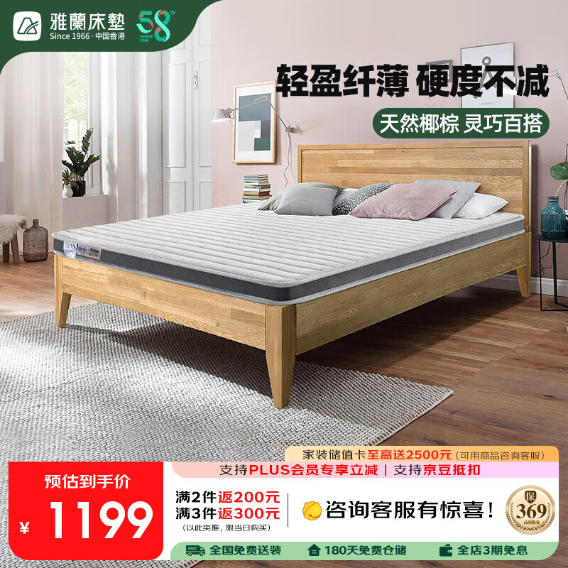 雅兰椰棕床垫偏硬舒脊学生薄床垫宿舍床垫 硬核椰棕款【8cm】1.2*2米价格:1499.00元!