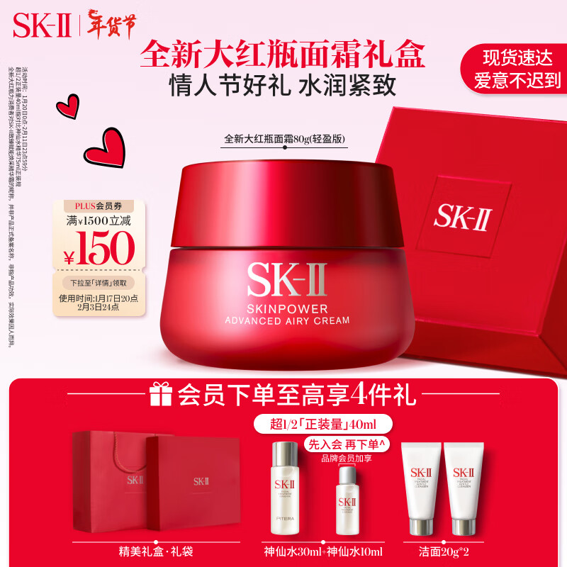 SK-II全新大红瓶面霜80g(轻盈)修护精华霜护肤品套装sk2化妆品新年礼物价格:1510.00元!
