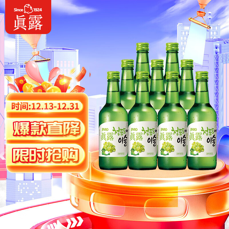 真露果味烧酒13°青葡萄味 360ml*9瓶装 微醺果味酒 年货送礼价格:99.90元!