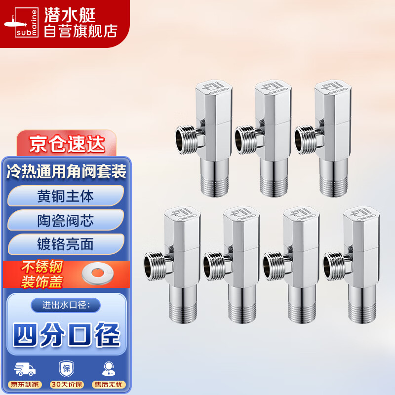 潜水艇(Submarine)F003-7冷热水通用角阀7件套装 国标4分口 铜镀铬亮面 美观大方价格:246.00元!