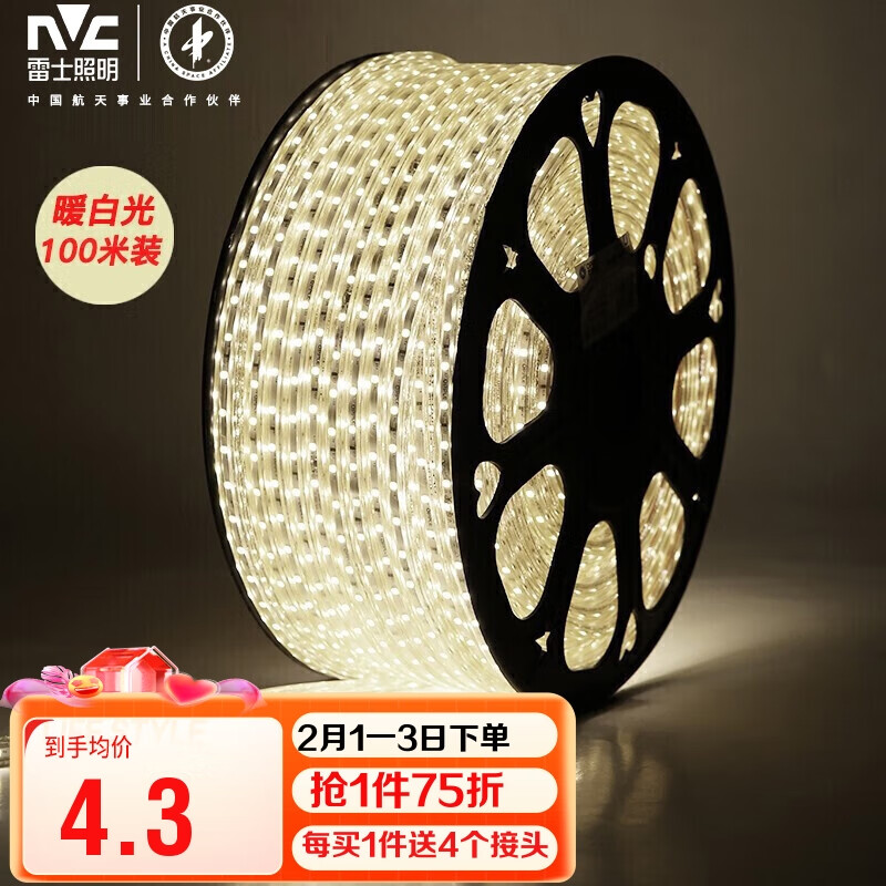 雷士(NVC) LED灯带多米装吊顶贴片高亮防水暗槽灯条2835-60珠100米装暖白光价格:570.00元!