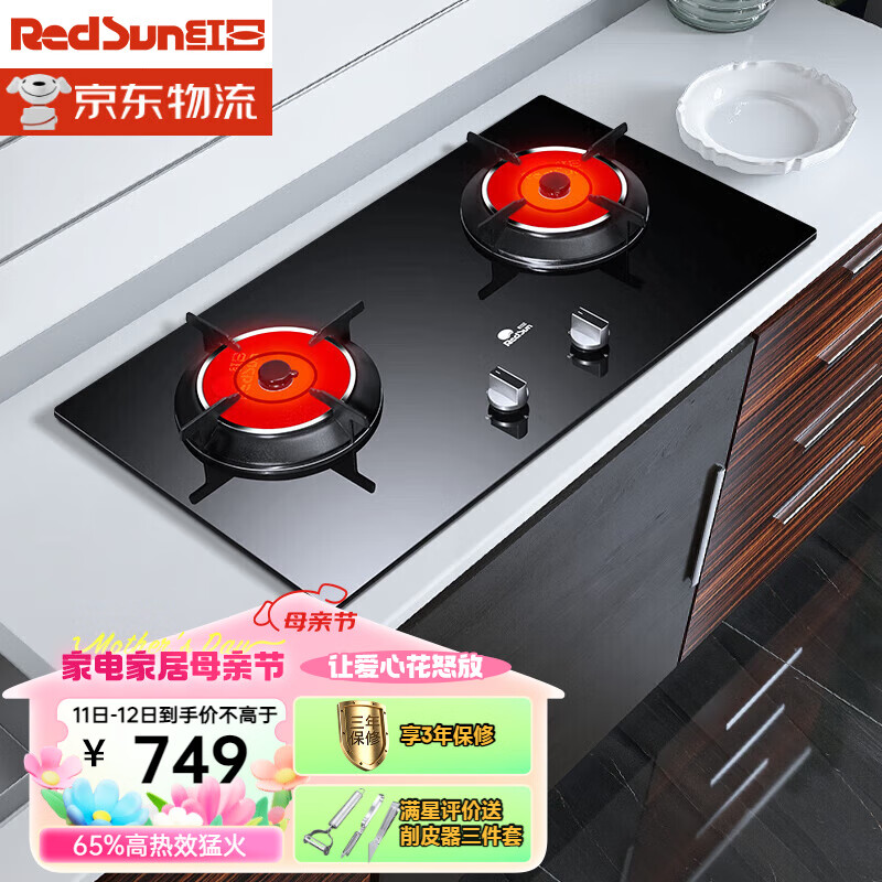 红日(RedSun)红外线燃气灶 天然气灶 台嵌两用 高热效率 一级能效 防爆钢化玻璃 JZT-EM308B(天然气)价格:749.00元!