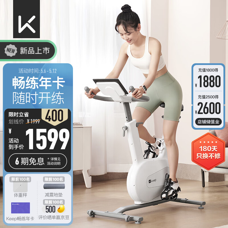 Keep动感单车mini畅练卡版家用运动器材含年卡组合白色款(需插电)价格:1599.00元!