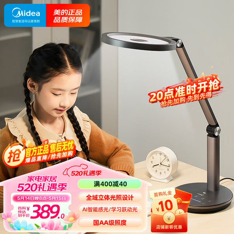 美的(Midea)国AA级护眼学习台灯上下双面发光阅读台灯智能感光工作台灯床头灯价格:439.00元!