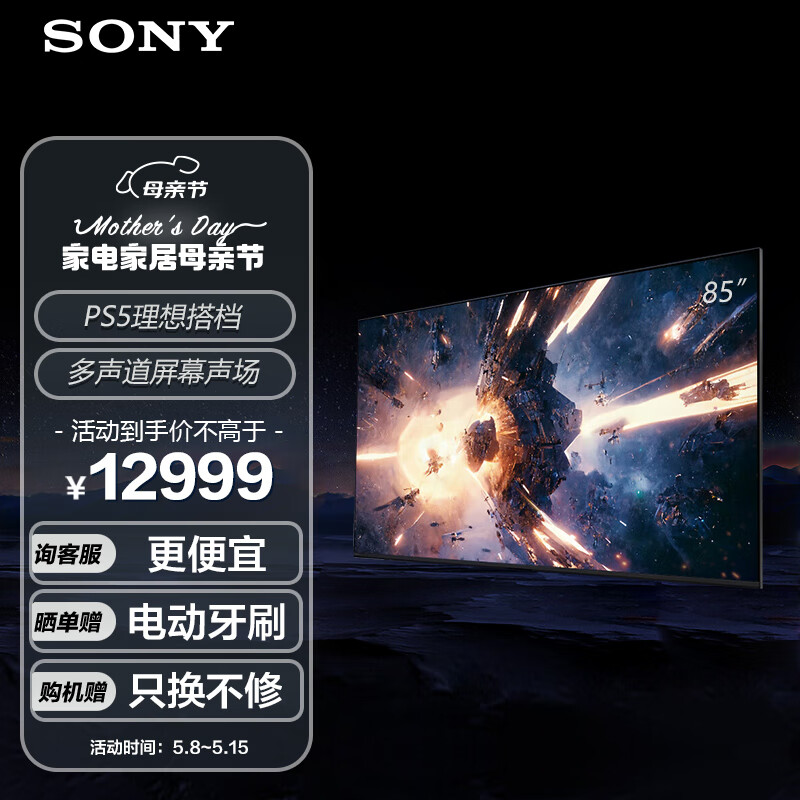 索尼(SONY)XR-85X90L 85英寸 游戏电视 4K 120Hz高刷 银黑价格:12999.00元!