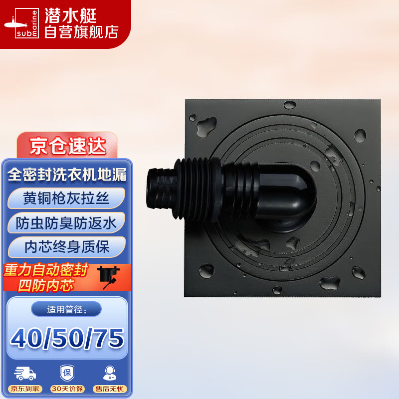 潜水艇(Submarine)MXTF40-10黄铜镀镍枪灰色拉丝面全密封洗衣机防臭地漏40管径移位价格:118.00元!