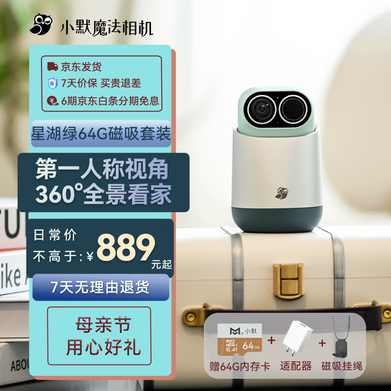 小默魔法相机vlog摄像机强力磁吸监控家用礼盒套装 骑行便携式运动相机 星湖绿 64G内存卡+磁吸挂绳 价格:889.00元!