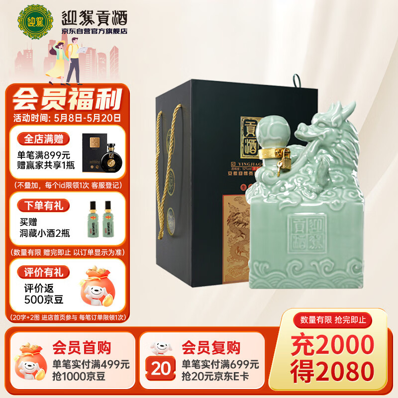 迎驾贡酒龙皇玉玺 浓香型白酒 52度 2.5L坛装(内含礼袋)价格:539.00元!