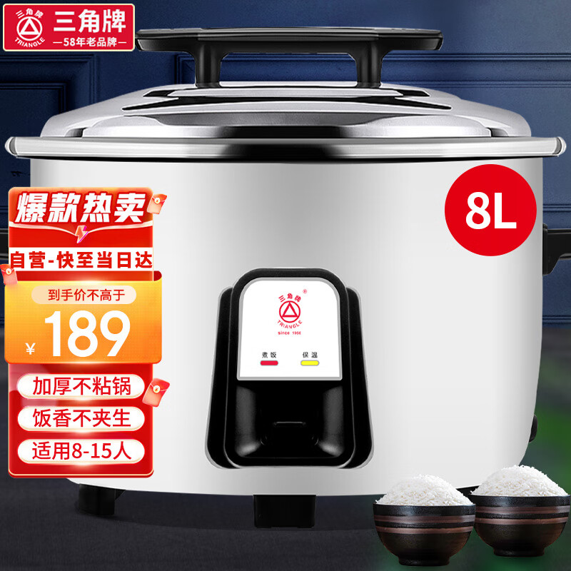 三角牌(Triangle)电饭煲大容量10人以上电饭锅食堂商用大电饭煲酒店饭店大型超大 8升 8-15人用价格:189.00元!