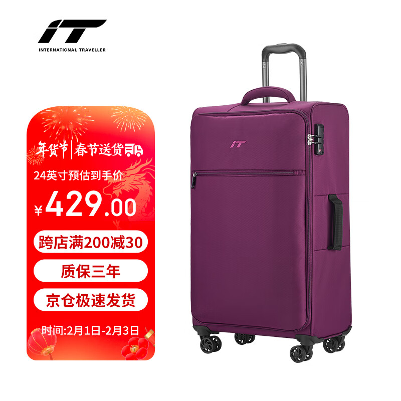 INTERNATIonAL TRAVELLER英国IT拉杆箱托运旅行箱万向轮超轻行李箱24英寸软布箱1191紫色价格:499.00元!