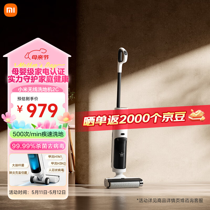 米家小米无线洗地机2C 家用吸拖洗一体 实时电解水杀菌 沿边扫拖自清洁 手持吸尘拖地 滚刷防缠绕价格:949.00元!