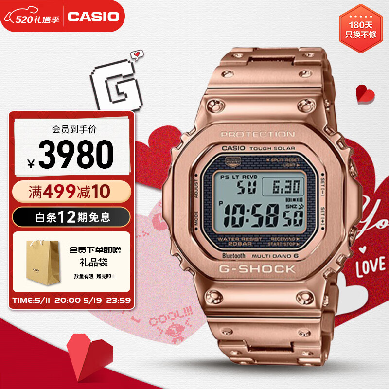 卡西欧(CASIO)手表男士经典小方块G-SHOCK运动电子表礼物GMW-B5000GD-4PRT价格:3990.00元!