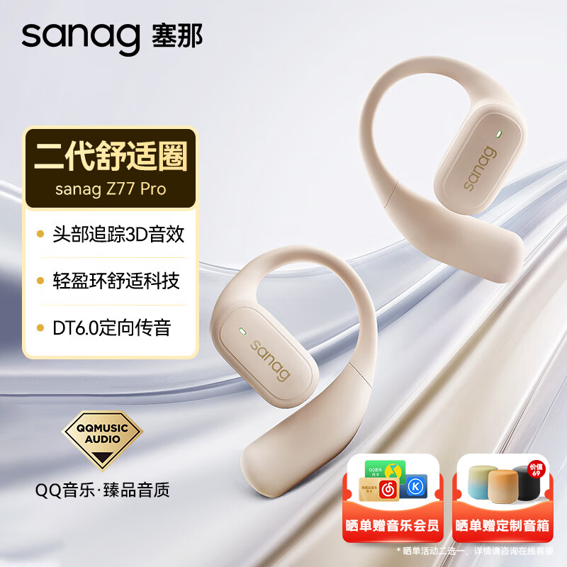 SANAG塞那【柏林之声丨超感音质】Z77蓝牙耳机挂耳式骨传导概念不入耳开放式运动耳机通话降噪高端礼物 暖阳白丨空间音效丨舒适不漏音价格:599.00元!