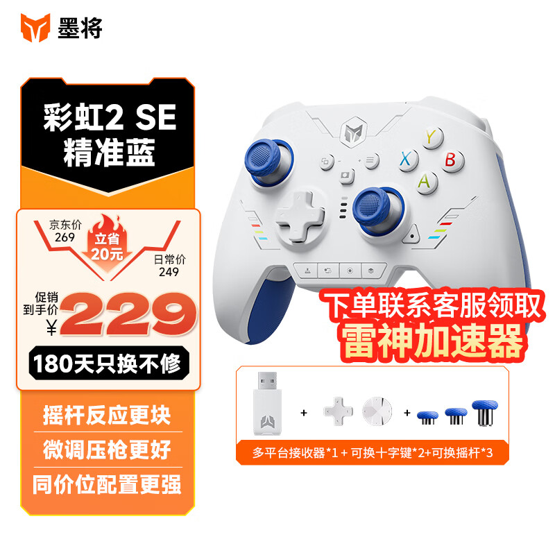 墨将 彩虹2 Se青春版游戏手柄 多模Switch Pro蓝牙体感震动电脑PC手机steam原神Apex猛兽派对 精准蓝价格:229.00元!