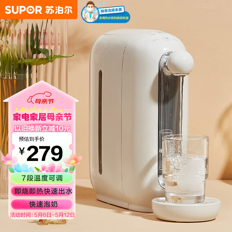 苏泊尔(SUPOR)即热电水壶 2.8L 迷你家用台式饮水机 电热水壶恒温烧水壶 饮水器茶水机 SW-JR0201A价格:279.00元!