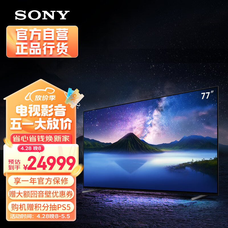 索尼(SONY)【官方直营】XR-77A80L 77英寸 4K OLED智能电视 屏幕发声 XR认知芯片 屏设计 京配上门价格:24999.00元!