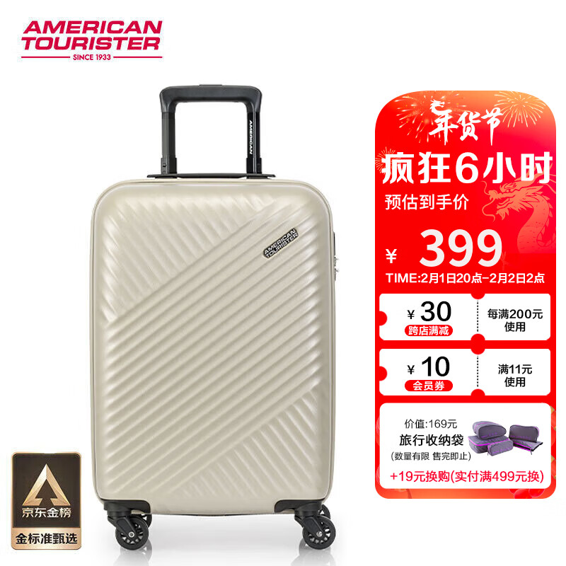 美旅箱包简约时尚男女行李箱超轻万向轮旅行箱密码锁 20英寸 TV7奶白色价格:469.00元!