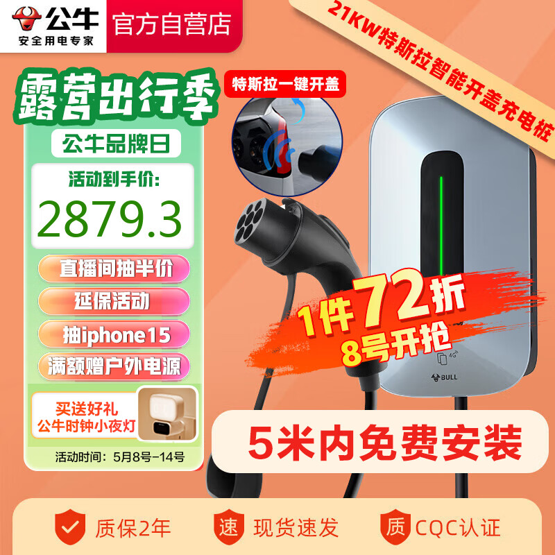 公牛(BULL)新能源汽车交流充电桩支持特斯拉全系小米su7汽车等 21KW4G款 送基础安装价格:3999.00元!