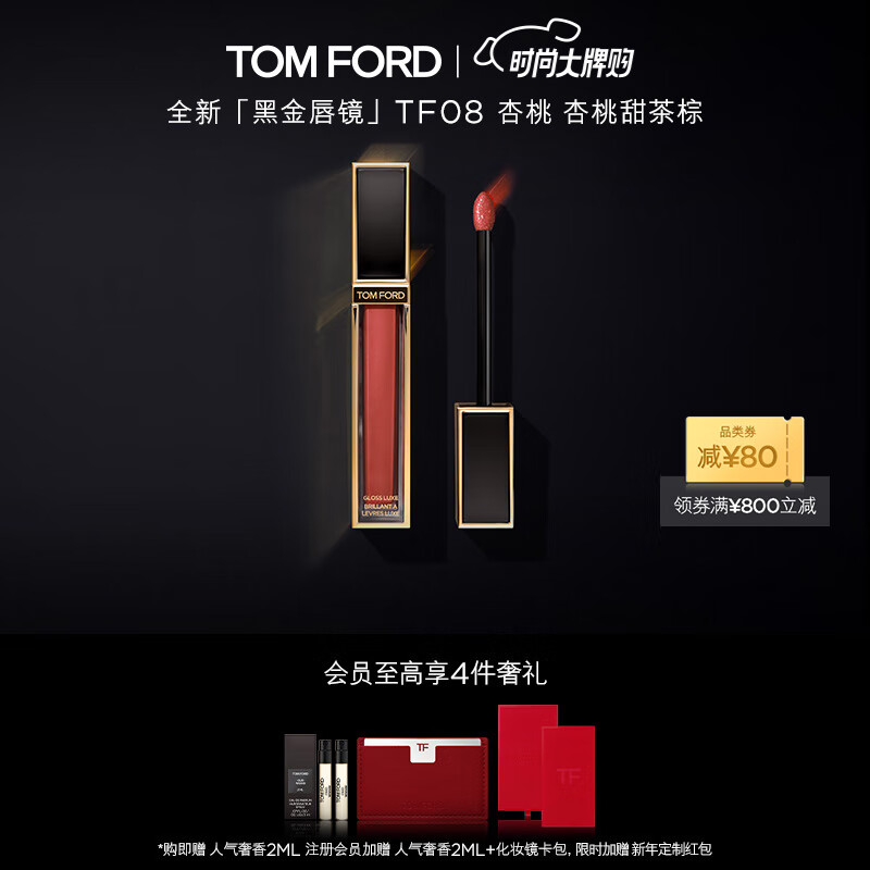 TOM FORD黑金唇镜 镜面唇釉 TF08杏桃甜茶 口红 生日礼物女 新年送女生价格:500.00元!