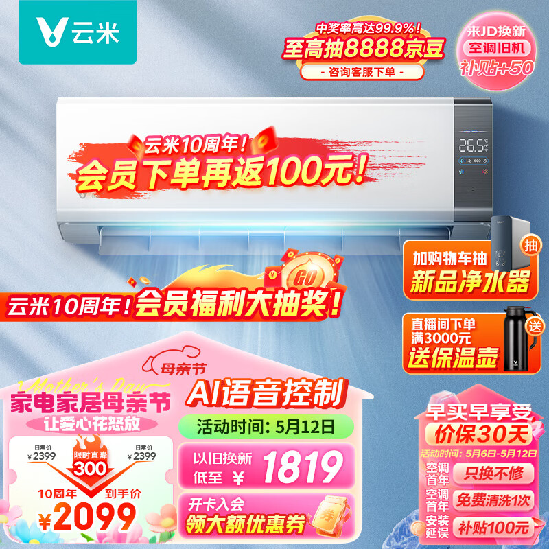 云米(VIOMI)1.5匹 智能变频冷暖 Super 2 米兰 AI语音控制 以旧换新 新一级空调挂机 KFRd-35GW/Y3YM6-A1价格:2199.00元!