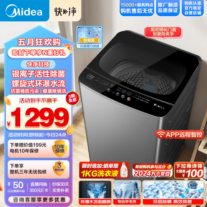 美的(Midea)波轮洗衣机全自动 快净系列 10公斤 环瀑水流低磨损 健康除螨 远程智控 专利免清洗 MB100V51Y价格:1299.00元!