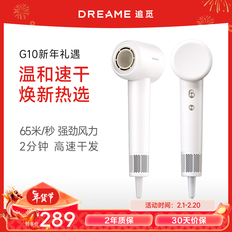 追觅极光G10高速吹风机家用电吹风大功率速干吹风筒负离子大风力低噪音新年情人节礼物 白色价格:499.00元!