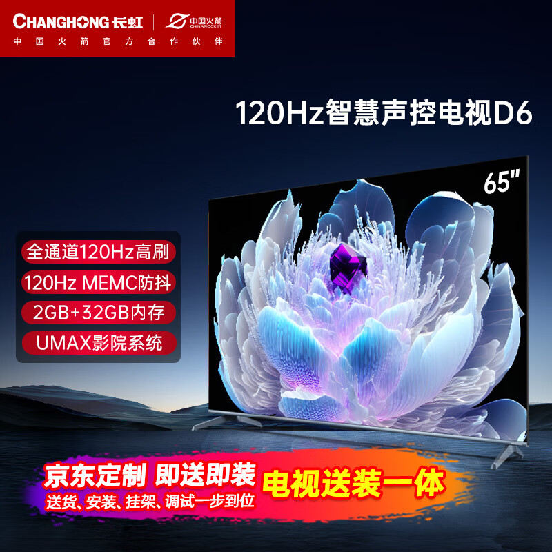 长虹电视65D6【包安装】 65英寸120Hz高刷免遥控语音杜比视界 2+32GB MEMC 4K平板液晶LED电视机价格:2438.00元!