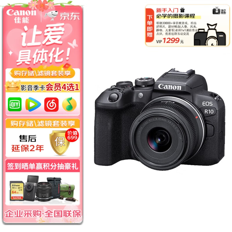 佳能(Canon)EOS R10 18-45mm F4.5-6.3 STM镜头套机 拍摄必备套装价格:8699.00元!
