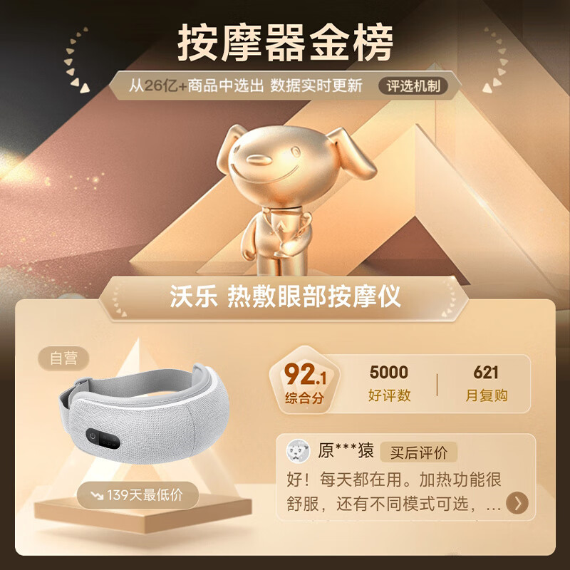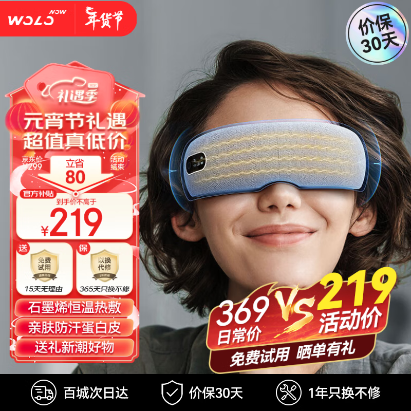 沃乐WOLO眼部按摩仪热敷睡眠眼罩护眼气囊揉压震动眼睛穴位保健成人学生送女友生日礼物男价格:369.00元!