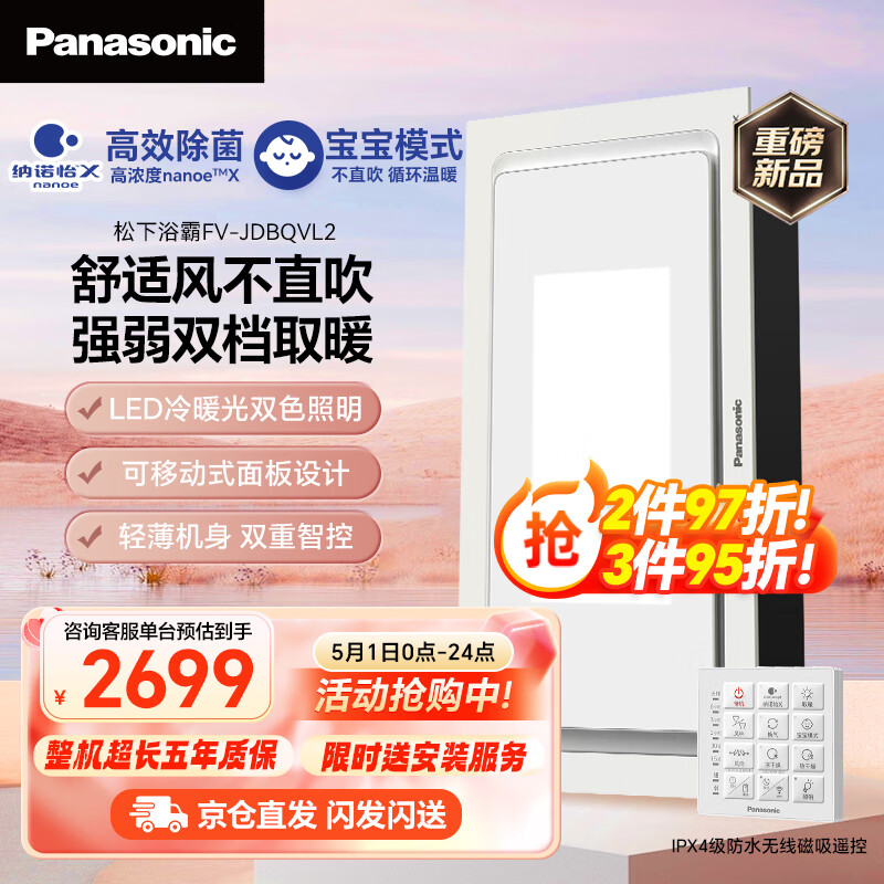 松下(Panasonic)风暖浴霸 浴霸暖风照明排气一体 通用吊顶式 FV-JDBQVL2大白盖价格:3599.00元!