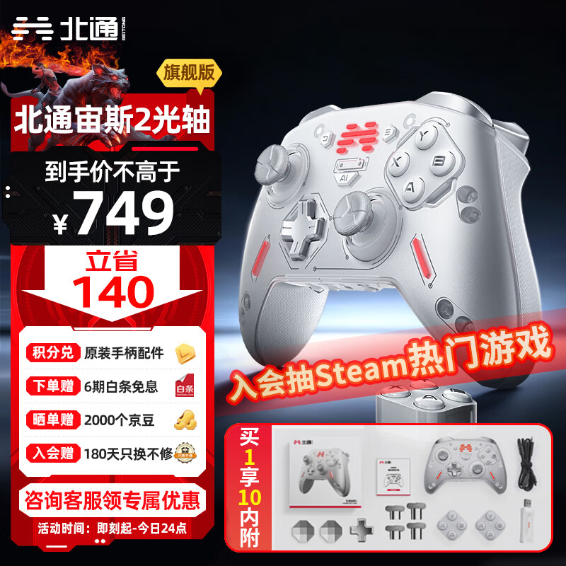 北通宙斯2光轴多模游戏手柄xbox自定义模组switch电脑steam手机蓝牙体感扳机震动NS幻兽帕鲁原神旗舰白价格:833.00元!