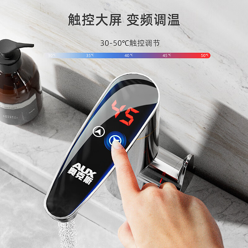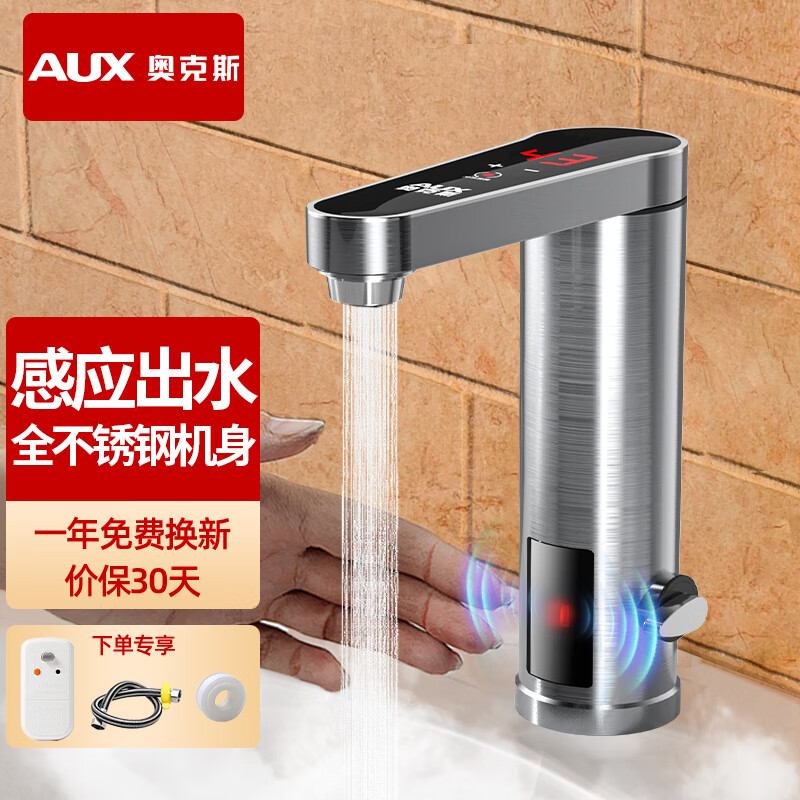 奥克斯电热水龙头变频恒温卫浴面盆冷热两用感应变频恒温速热快热厨房宝下进水带漏保WT1不锈钢价格:329.00元!