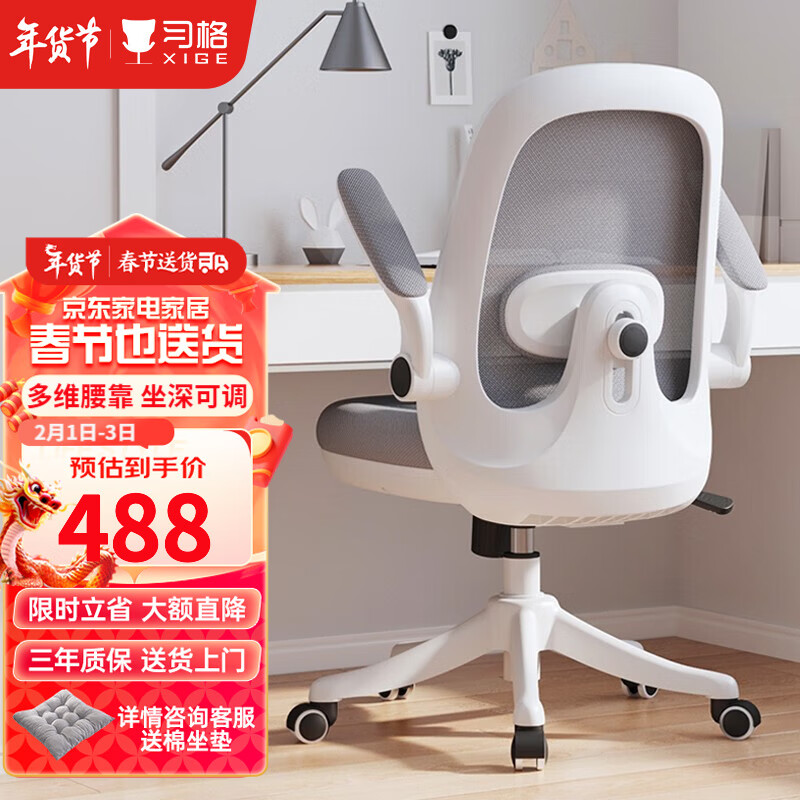 习格家用电脑椅学生学习写字书房座椅办公椅转椅职员会议椅舒适久坐 9012高配版优雅灰价格:559.00元!