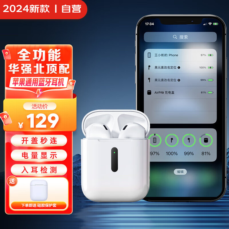 果元素苹果蓝牙耳机无线适用iPhone14/13/12/11华为/vivo/小米air二代华强北顶配蓝牙智能降噪运动耳机价格:139.00元!