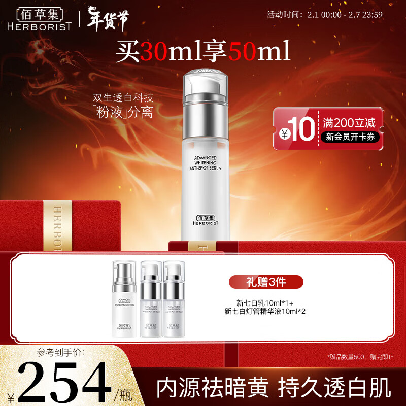 佰草集【新七白】美白灯管精华蜜液30ml(化妆品 护肤品 生日礼物送女友)价格:254.00元!