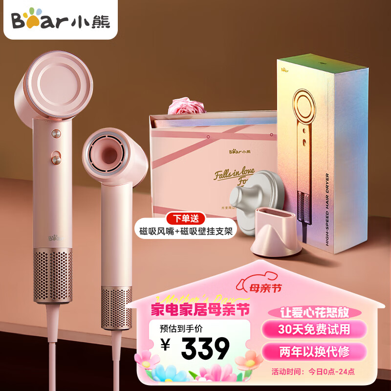 小熊(Bear)吹风机 电吹风家用 吹风筒大功率高速 低噪音亿级负离子 节日礼物 DCF-C15W5【粉】礼盒款价格:609.00元!