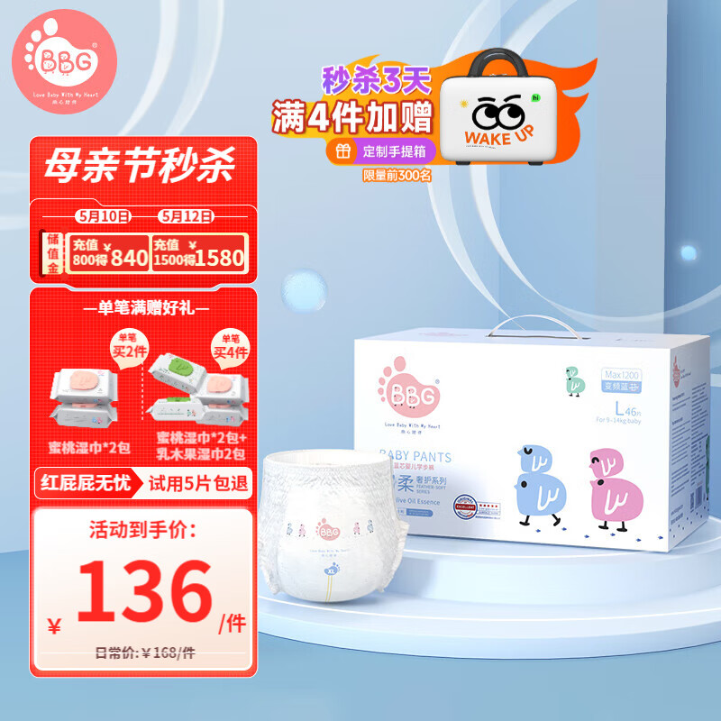 BBG蓝芯羽柔奢护拉拉裤XXXXL码32片(≥18kg)尿不湿成长裤鲸吸瞬干价格:155.00元!