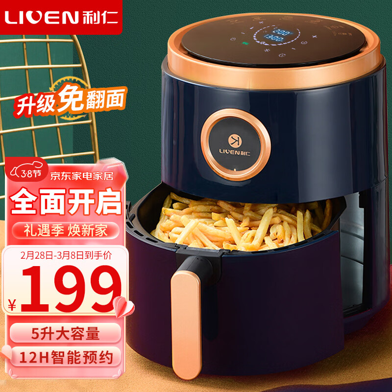 利仁(Liven)空气炸锅家用5升大容量智能无油电炸锅蒸汽炸锅 多功能空气锅炸烤一体烤箱低脂薯条机KZ-D5017价格:199.00元!