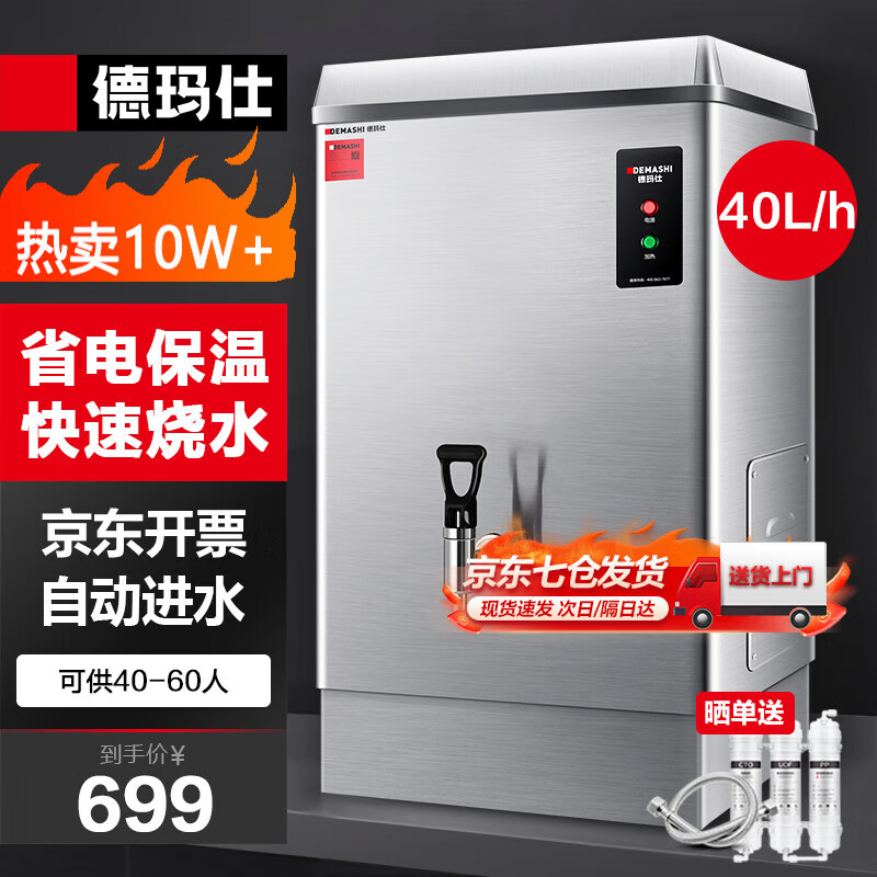 德玛仕 DEMASHI 电热开水器商用开水机 全自动进水 304不锈钢 保温烧水器商用 KS-30F(发泡款)价格:699.00元!
