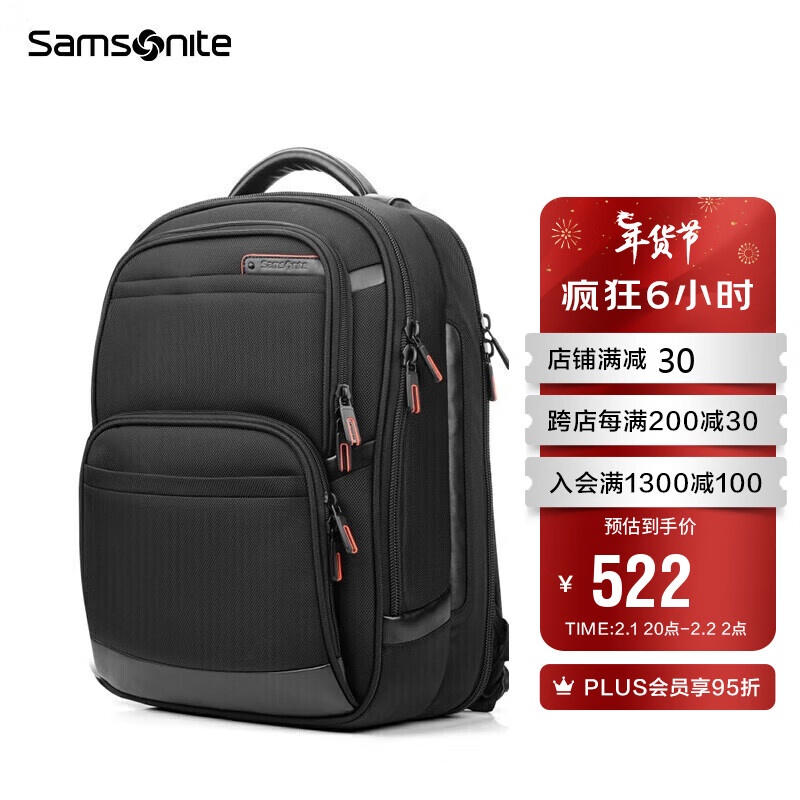 新秀丽(Samsonite)电脑包双肩包商务背包笔记本包休闲都市36B*09009黑色15英寸价格:642.00元!
