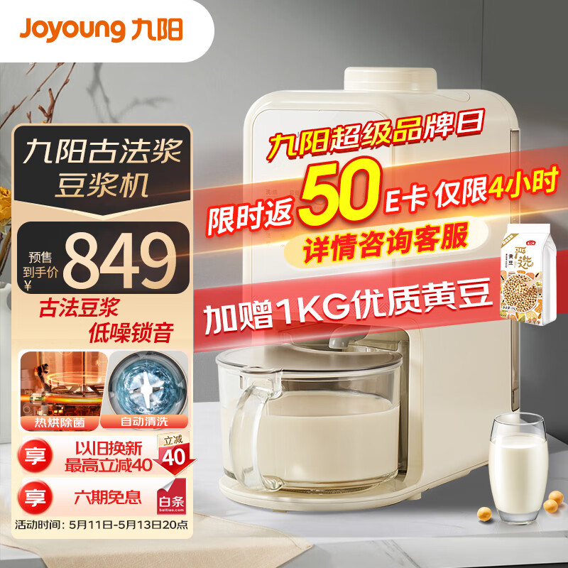 九阳(Joyoung)免手洗豆浆机古法豆浆24h预约0.3-1.2L家庭容量热烘除菌低音研磨破壁机榨汁机DJ12-K3价格:899.00元!