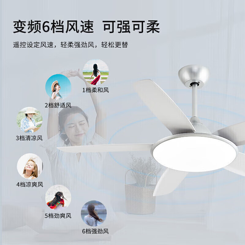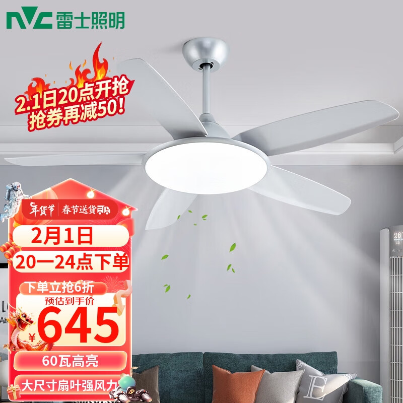 雷士(NVC)风扇灯大尺寸开叶吊扇灯简约客厅餐厅变频六档强劲风银色高亮60瓦价格:1075.00元!