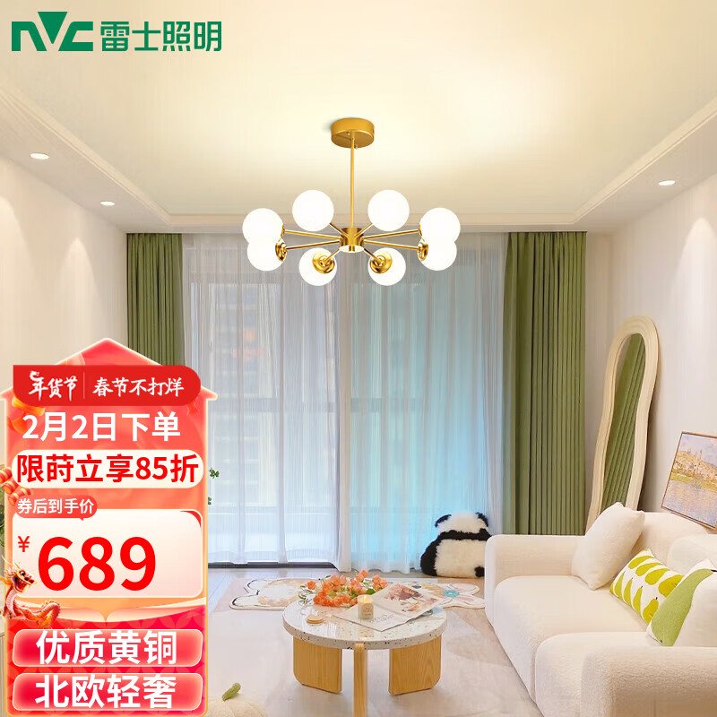 雷士(NVC)吊灯魔豆分子灯黄铜客厅卧室书房餐厅北欧灯具灯饰创意现代轻奢价格:869.00元!