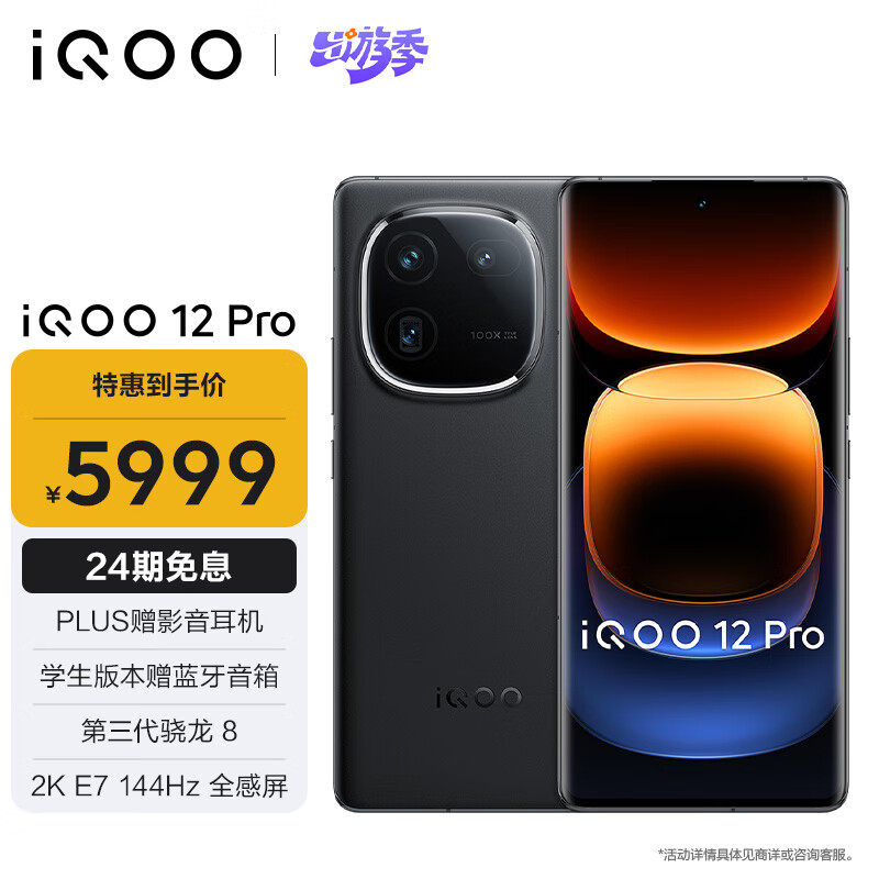 vivo iQOO 12Pro 16GB+1TB赛道版 2K E7 144Hz屏幕 大底主摄潜望式长焦 第三代骁龙 8 5G电竞手机价格:5999.00元!