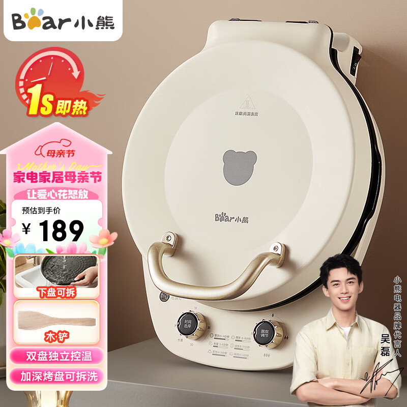 小熊(Bear)电饼铛加深烤盘可拆洗家用电饼档薄饼机三明治早餐机煎饼锅烙饼锅双盘加热 DBC-E15T1价格:189.00元!