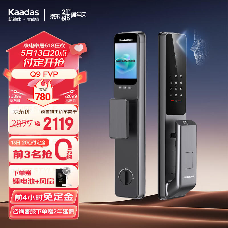 凯迪仕(kaadas)指静脉智能锁指纹锁 智能门锁可视猫眼大屏 人脸识别 Q9 FVP价格:2499.00元!