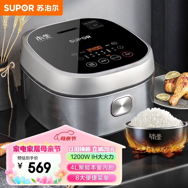 苏泊尔(SUPOR)4L电饭煲Pro电饭锅IH电磁加热本釜内胆多功能家用智能电饭煲3-8人星空银SF40HC45价格:549.00元!